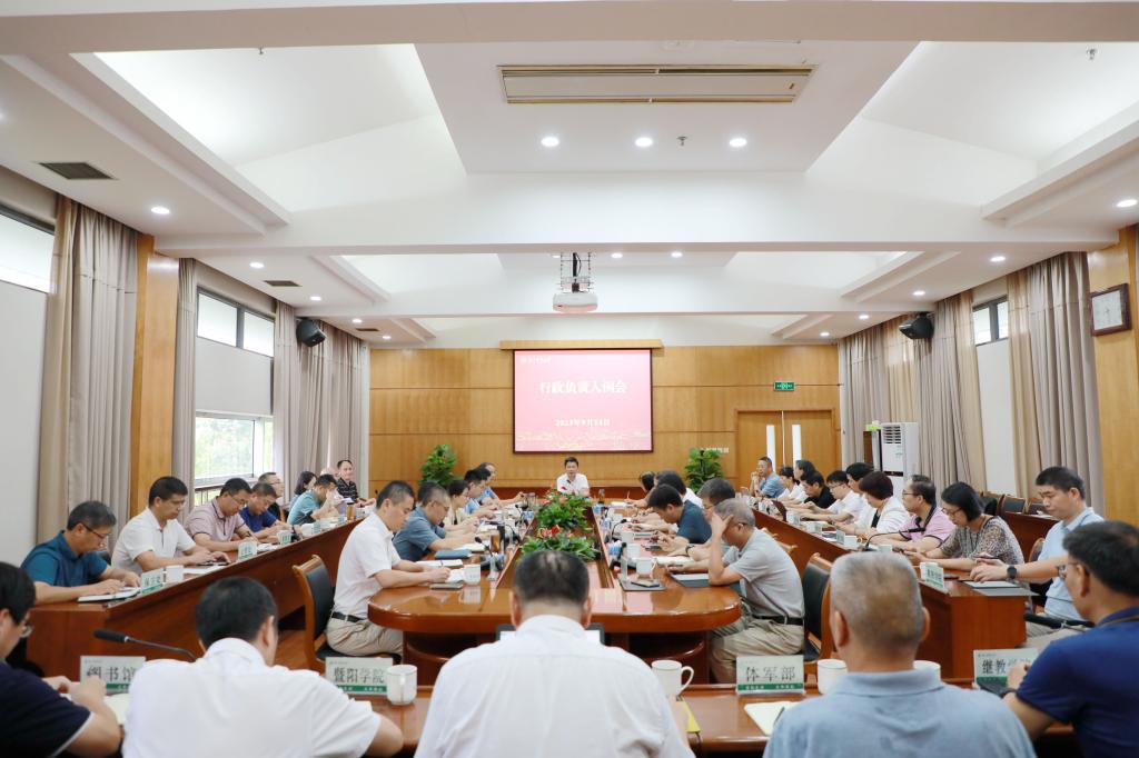 學校各行政職能部門、各學院(部)、教輔機構(gòu)、附屬單位等單位行政負責人參加會議。相關(guān)部門負責人匯報了近期重點工作推進情況和下一步工作安排。
