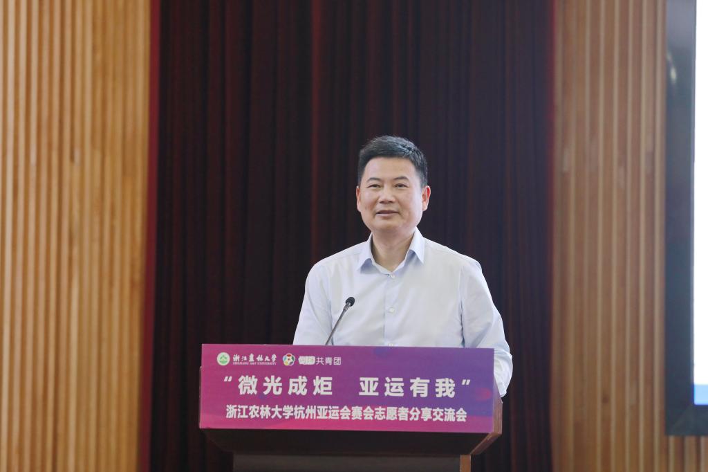 10月8日晚,“微光成炬 亞運有我”浙江農(nóng)林大學杭州亞運會賽會志愿者分享交流會在東湖校區(qū)召開。校長沈希、校黨委副書記施美紅出席活動。