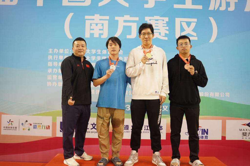 10月14日-17日,第22屆中國大學生游泳錦標賽(南方賽區(qū))在遵義市奧體中心游泳館舉行。我校4名游泳健兒參賽,取得4金2銀3銅、破賽會紀錄1項的優(yōu)異成績。