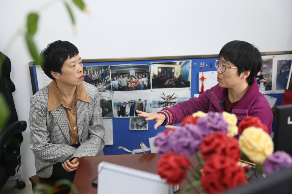 走訪中,施美紅先后慰問了學院國家級人才楊彩梅教授,省級人才牛冬教授和楊夢華教授,分別聽取了她們在科研、實驗、生活等方面的情況,參觀了人才實驗室,充分肯定了她們在教學、科研、社會服務等方面取得的成就,感謝她們?yōu)閷W校事業(yè)發(fā)展做出的積極貢獻,對她們在教學科研一線默默付出和帶領團隊攻堅克難展現(xiàn)的科學精神表示稱贊。同時,她還詳細了解高層次人才在工作中遇到的困難和問題,傾聽她們對學校發(fā)展建設的建議和意見。