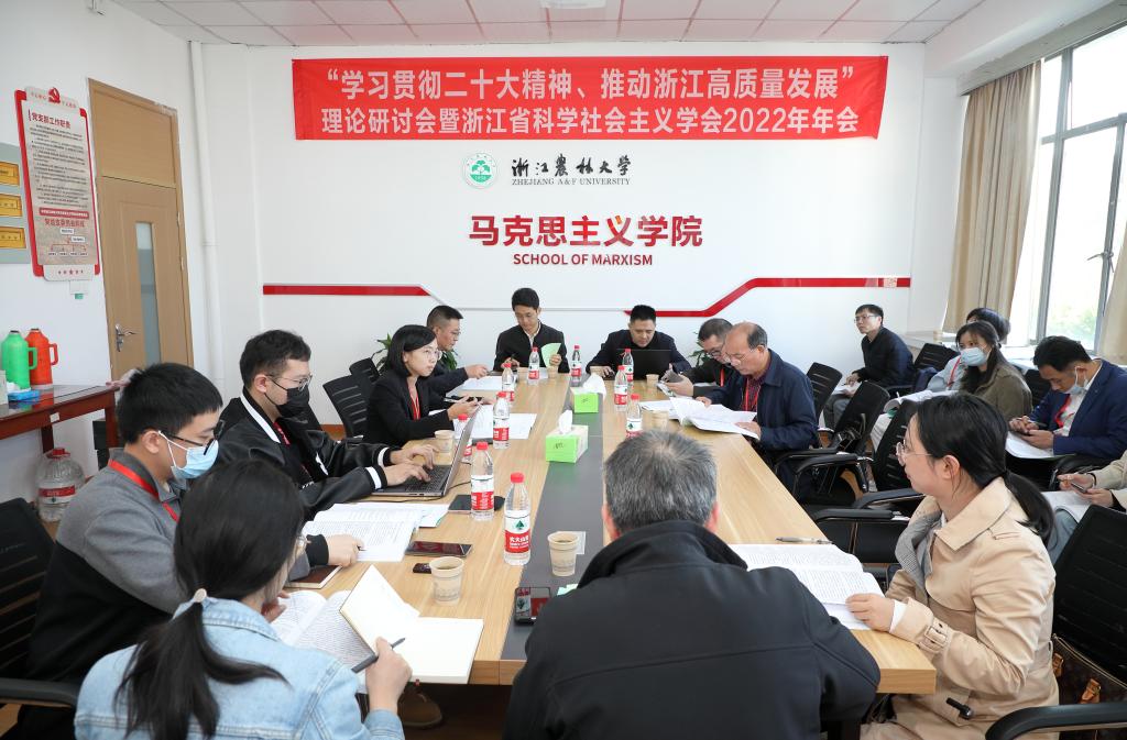 11月5日,“學習貫徹黨的二十大精神、推動浙江高質(zhì)量發(fā)展”理論研討會暨浙江省科學社會主義學會2022年年會在學校舉行,中共浙江省委黨校副校長、浙江行政學院副院長徐明華,浙江農(nóng)林大學副校長徐愛俊,浙江省科學社會主義副會長王景玉和浙江農(nóng)林大學馬院負責人出席會議。