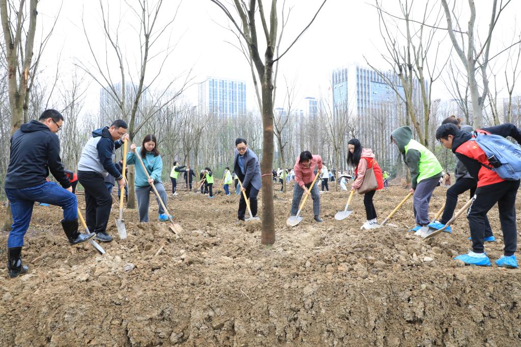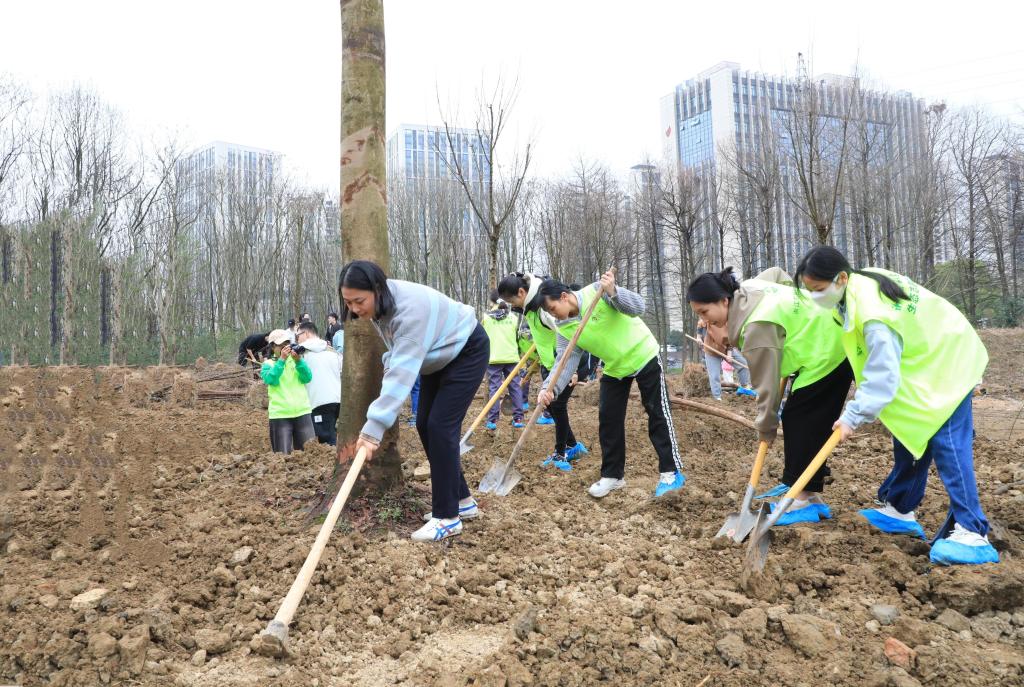 在大家的努力下,師生們植下三角楓、櫸樹等鄉土樹種一百余棵,為東湖校區又增添了一抹濃綠。學校植物園辦公室也充分把握好時節,于近期開展二環路行道樹提升、校友捐贈名貴植物進校園等工作,力爭將校園環境打造的更為優美。