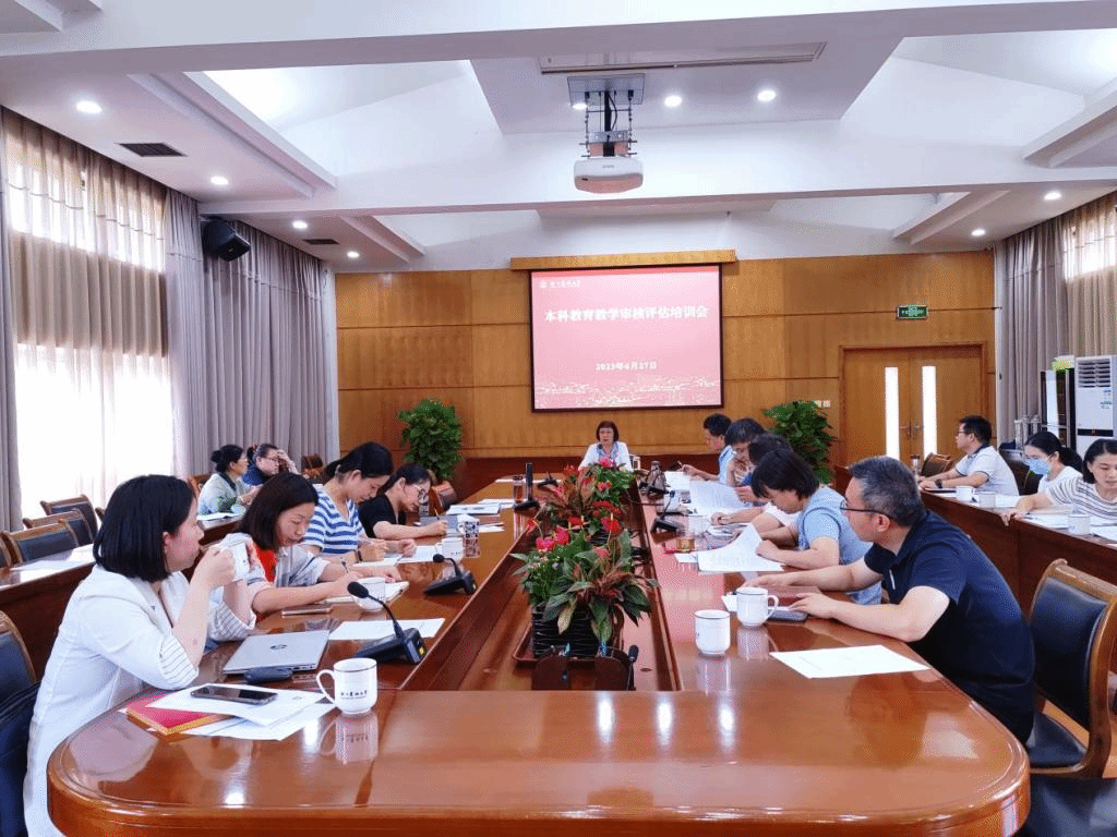 培訓會上,教務處和質控中心負責人分別解析了審核評估指標內涵、自評報告撰寫要求和評建工作方案。