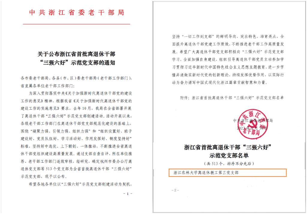 6月30日,省委老干部局公布了浙江省首批離退休干部“三強(qiáng)六好”示范黨支部名單,我校離退休第三黨支部成功入選。