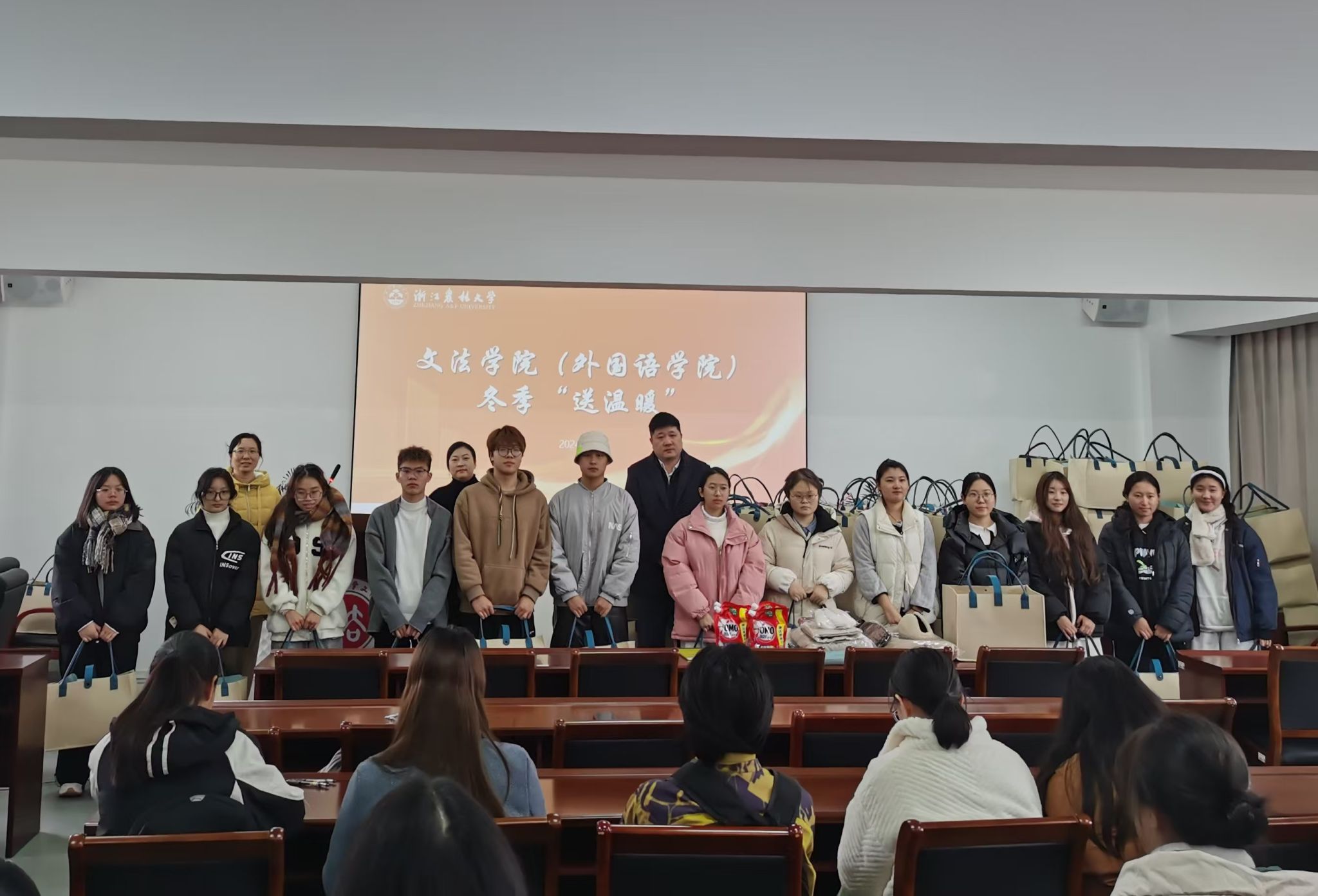 12月11日中午,文法學院在衣錦校區實驗大樓502開展了2024年冬季“送溫暖”活動。學院相關負責人及輔導員和受資助學生參加此次活動。