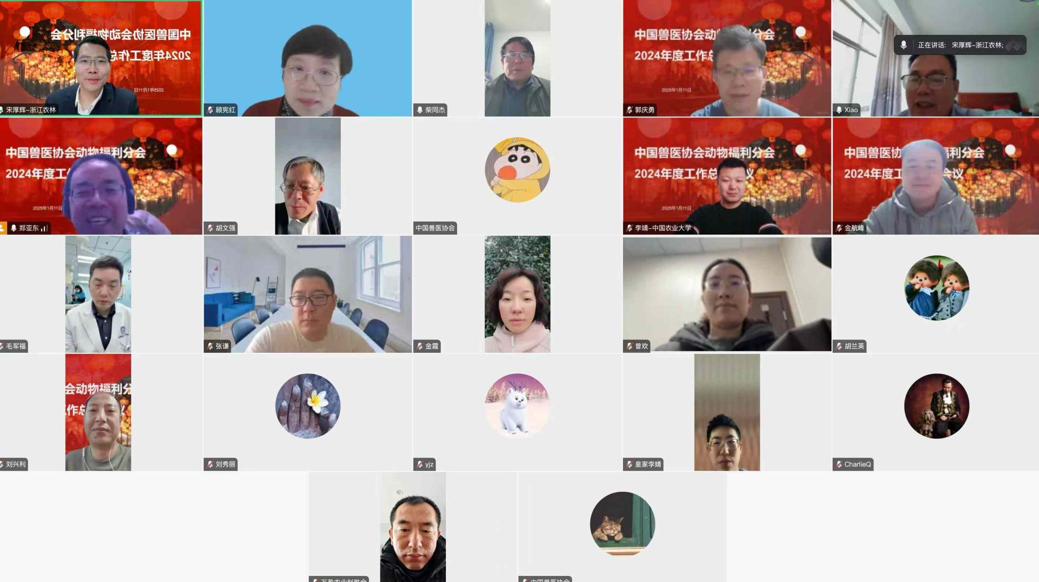 1月11日,中國獸醫協會動物福利分會以線上形式召開2024年度工作總結大會,大會主題是“迎難而上 步步為營 加快動物福利高質量發展”。中國獸醫協會副秘書長劉秀麗、動物福利分會全體領導班子成員及多位會員了參加會議。會議聽取并討論了動物福利分會2024年度工作總結和2025年度工作計劃。